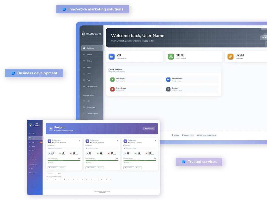 Monitor brand mentions, site functionality, indexing, and errors with automated checks and detailed reporting.